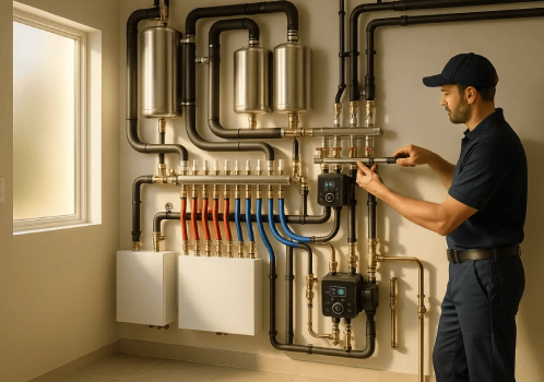 A hydronic heating system offers efficient, consistent, and energy-saving comfort for your home or office. Hydronic systems use hot water circulated through pipes to heat your space, making them an environmentally friendly option for sustainable home heating.